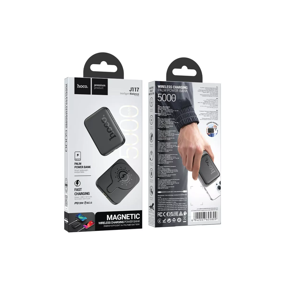 Технические характеристики Внешний аккумулятор MagSafe 5 000 mAh HOCO J117 (PD 20W/QC3.0/LED инд.бат) черный