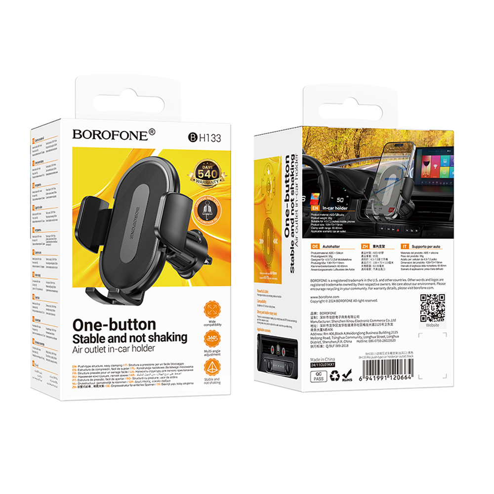 Автодержатель BOROFONE BH133 зажим в дефлектор черный