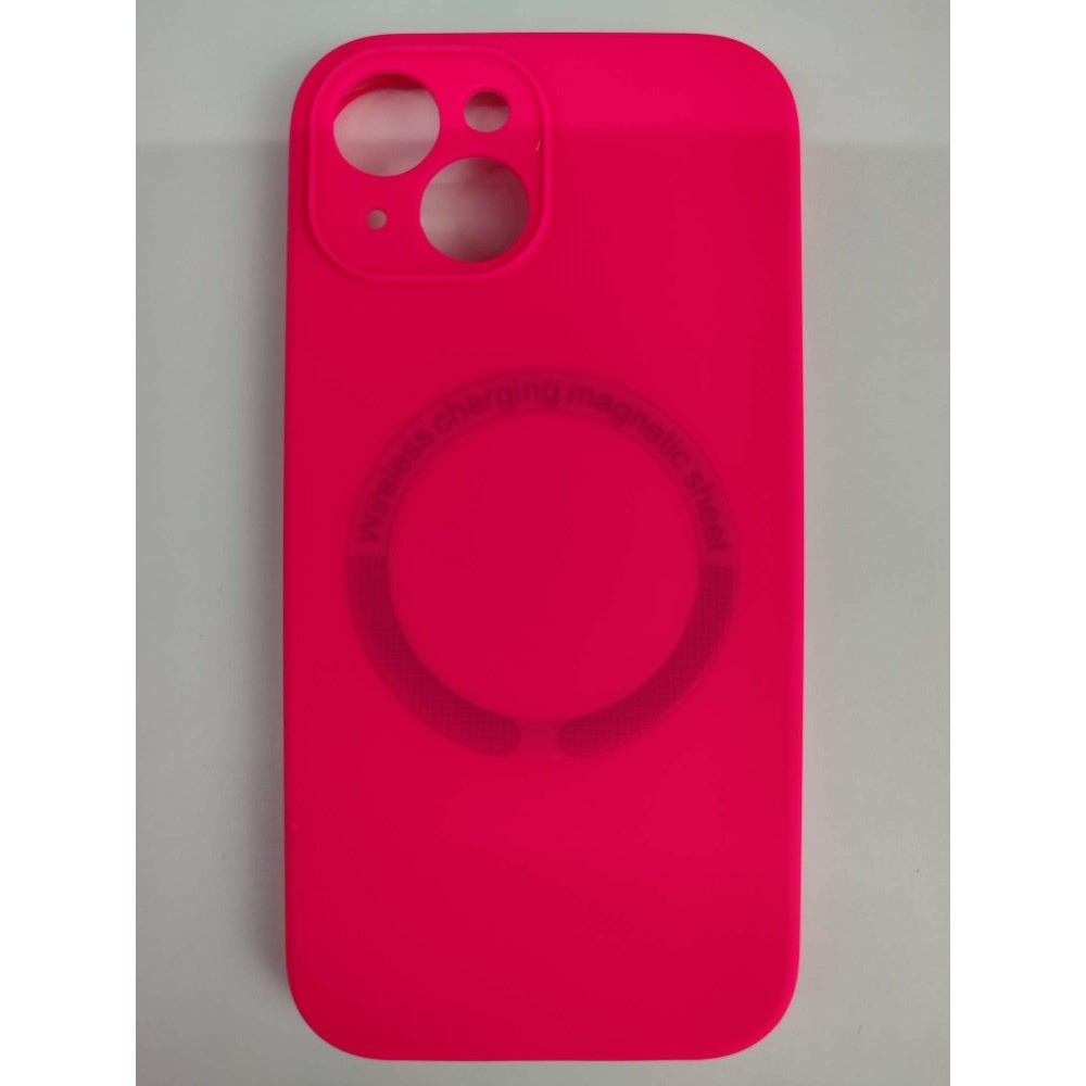 Чехол силиконовый iPhone 15 Magsafe под оригинал (защита камеры) фуксия