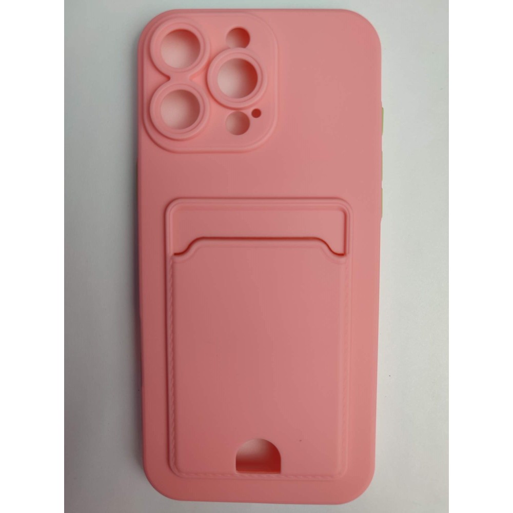 Чехол силиконовый iPhone 16 Pro Max матовый цветной с визитницей розовый
