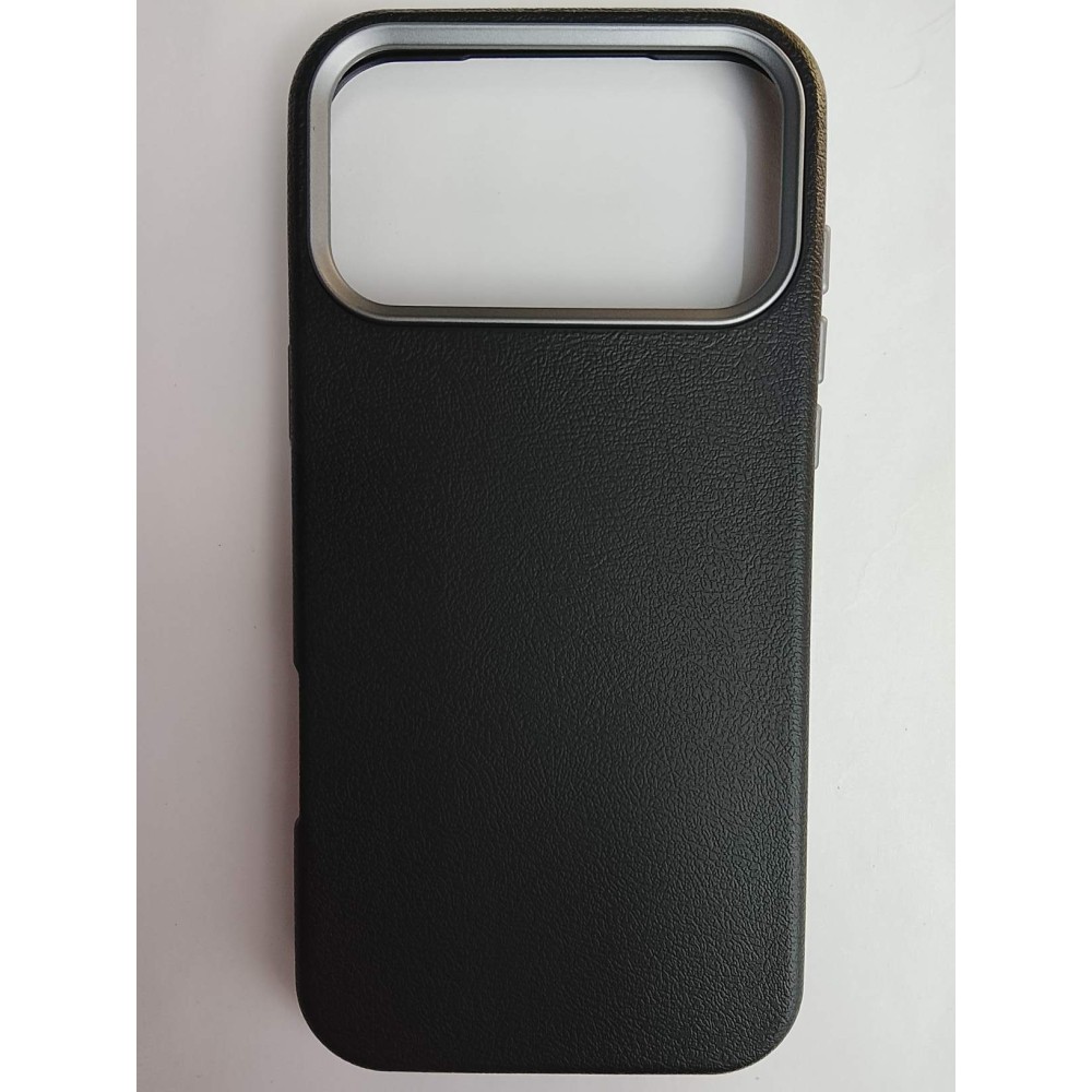 Чехол пластиковый iPhone 17 Pro Max ЭкоКожа с ободком черный