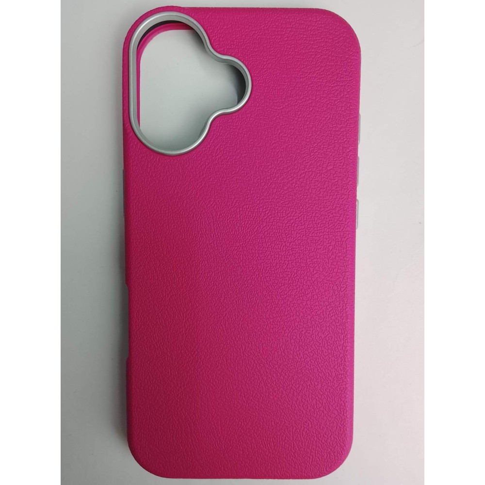 Чехол пластиковый iPhone 17 ЭкоКожа с ободком фуксия