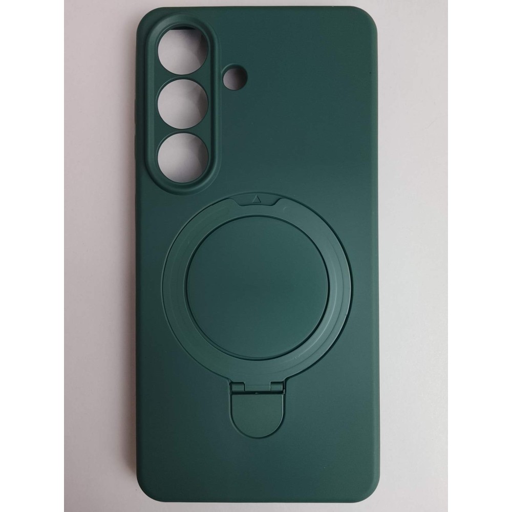 Чехол силиконовый Samsung S26 MagSafe цветной с кольцом темно-зеленый