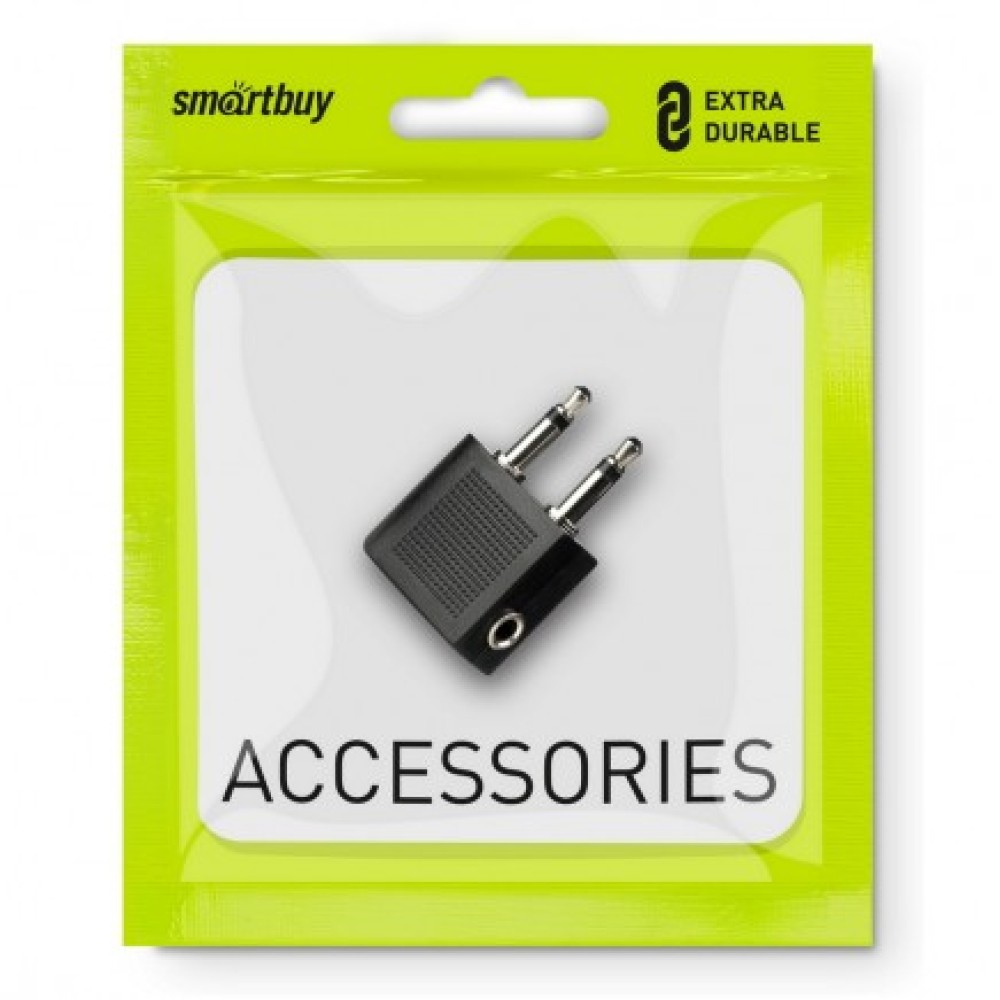 Переходник 2 х 3.5 вход - 3.5 выход для наушников в самолет SMARTBUY A209 черный – это идеальное решение для комфортного прослушивания музыки и просмотра фильмов во время авиаперелетов. Этот компактный и легкий адаптер позволяет подключить ваши стандартные наушники с разъемом 3.5 мм к бортовой аудиосистеме самолета, которая обычно оснащена двумя разъемами 3.5 мм.