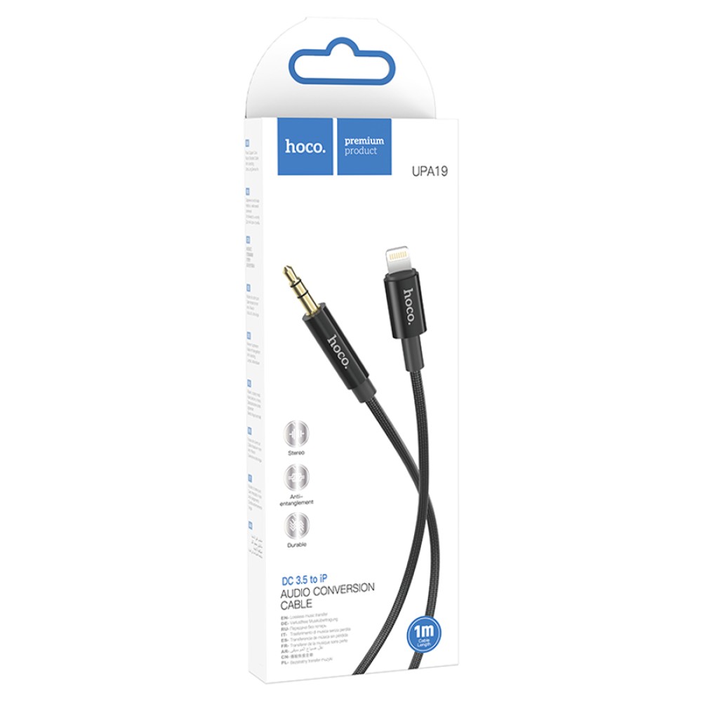Кабель AUX - Lightning HOCO UPA19 (1м/текстиль) черный