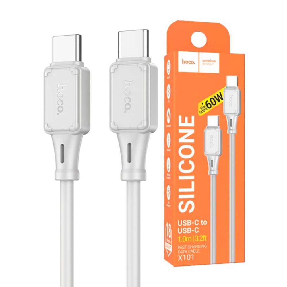 Кабель Type-C - Type-C HOCO X101 (60W/3A/1m/силиконовый) серый