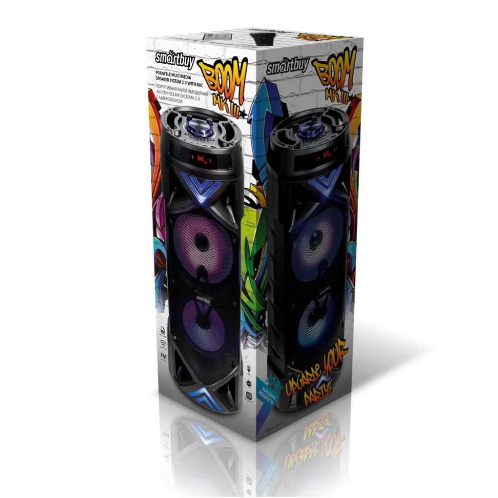 Портативная колонка SMARTBUY BOOM MK III (Bl/USB/TF/AUX/микр/ПДУ/цветомуз/30Вт) 200x570x200 черная