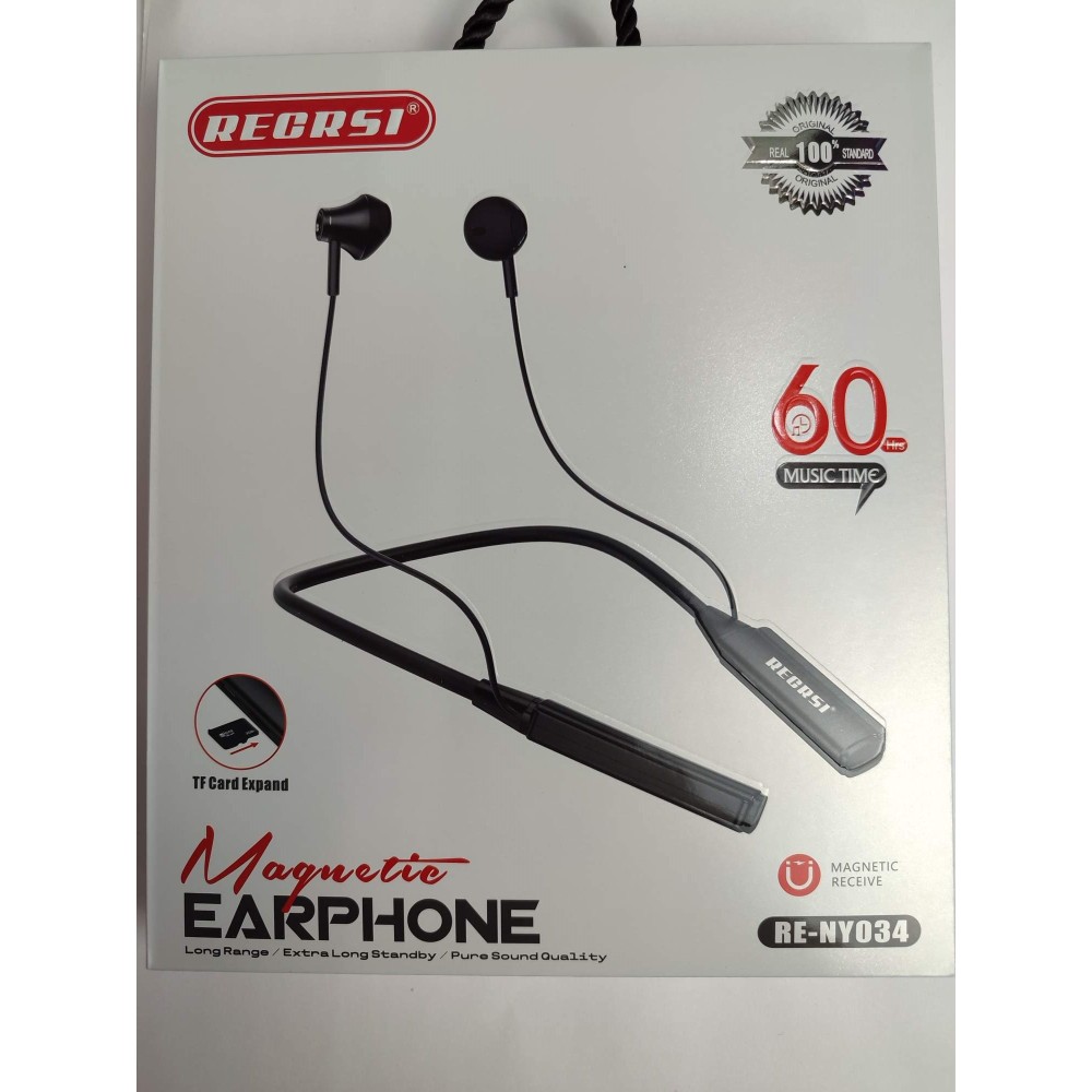 Беспроводные спорт наушники RECRSI RE-NY034 (60 ч/500 mAh/TF) черные