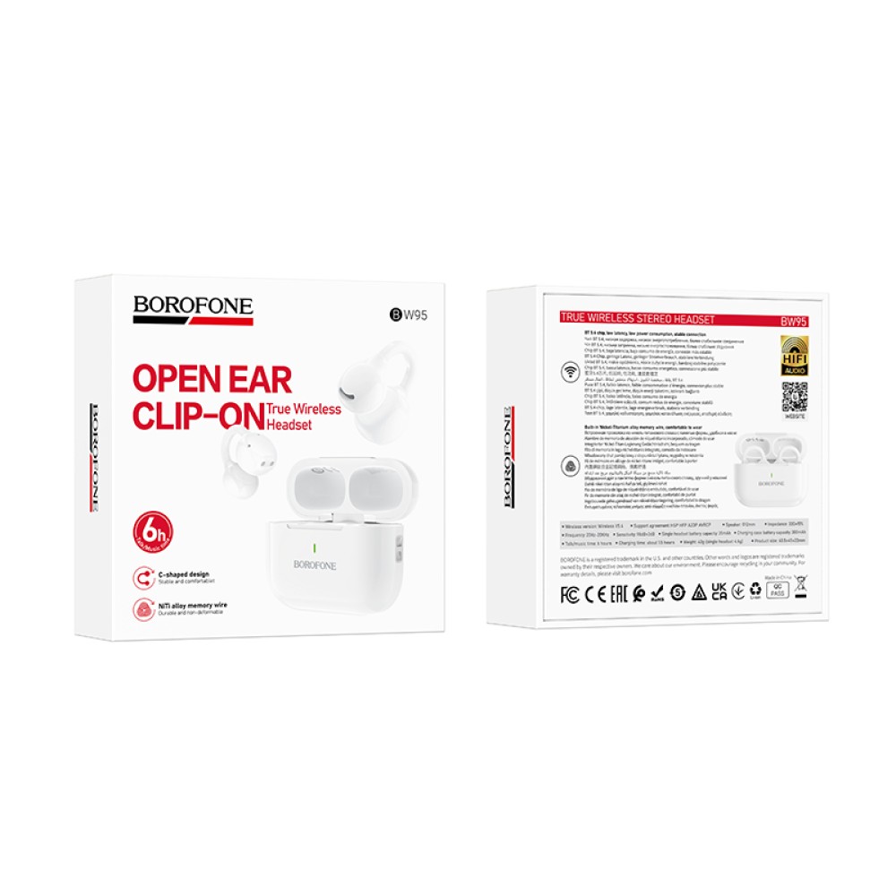 Беспроводные TWS наушники BOROFONE BW95 (6 ч/300 mAh) белые