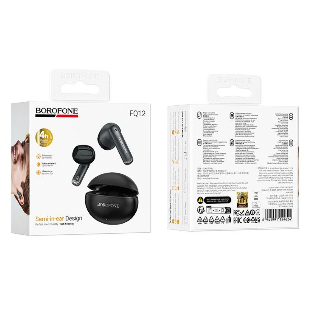 Беспроводные TWS наушники BOROFONE FQ12 (4 ч/350 mAh) черные
