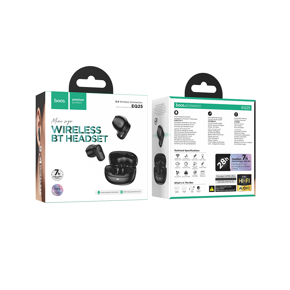 Технические характеристики Беспроводные TWS наушники HOCO EQ25 (7 ч/300 mAh) черные