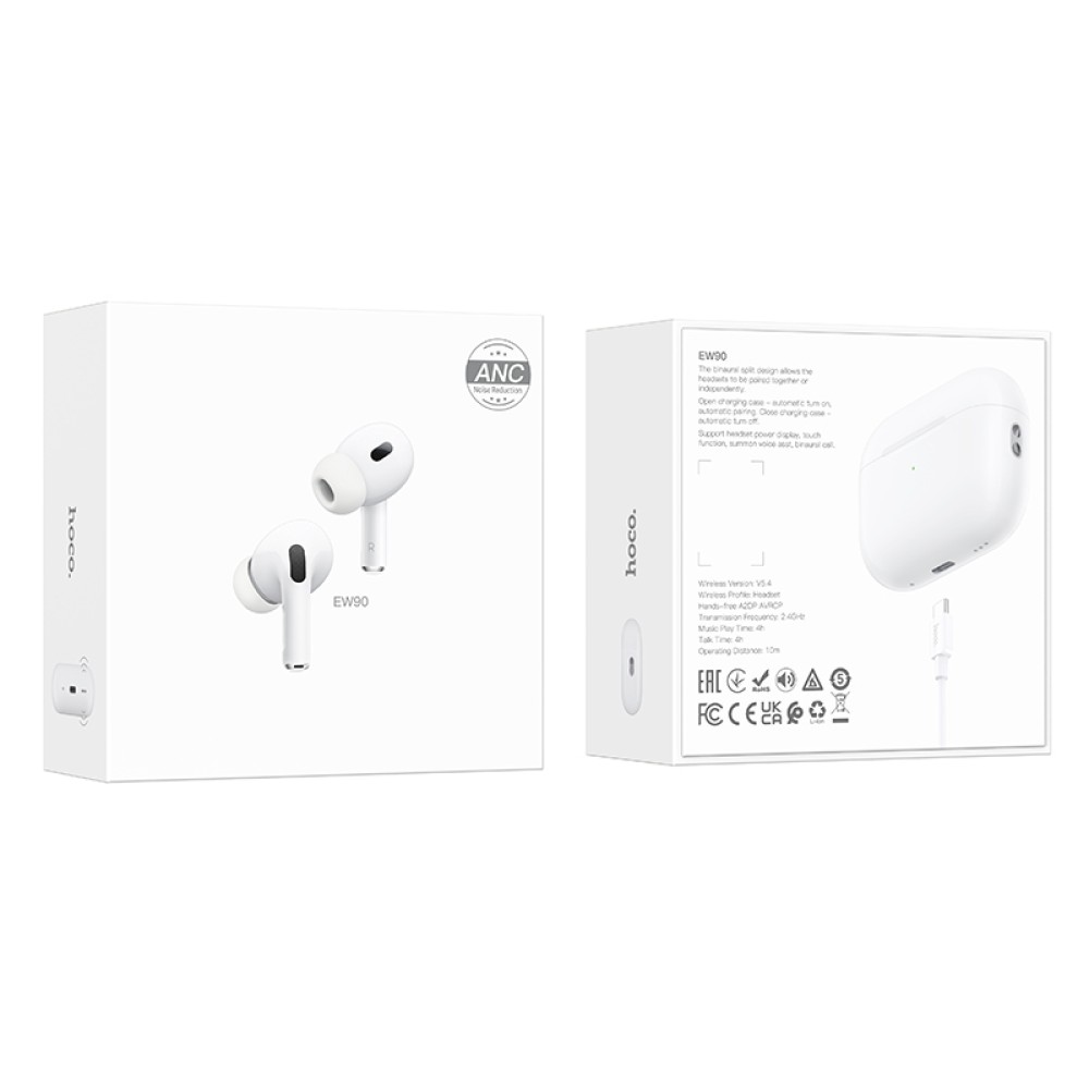 Технические характеристики Беспроводные TWS наушники HOCO EW90 (4 ч/300 mAh) белые