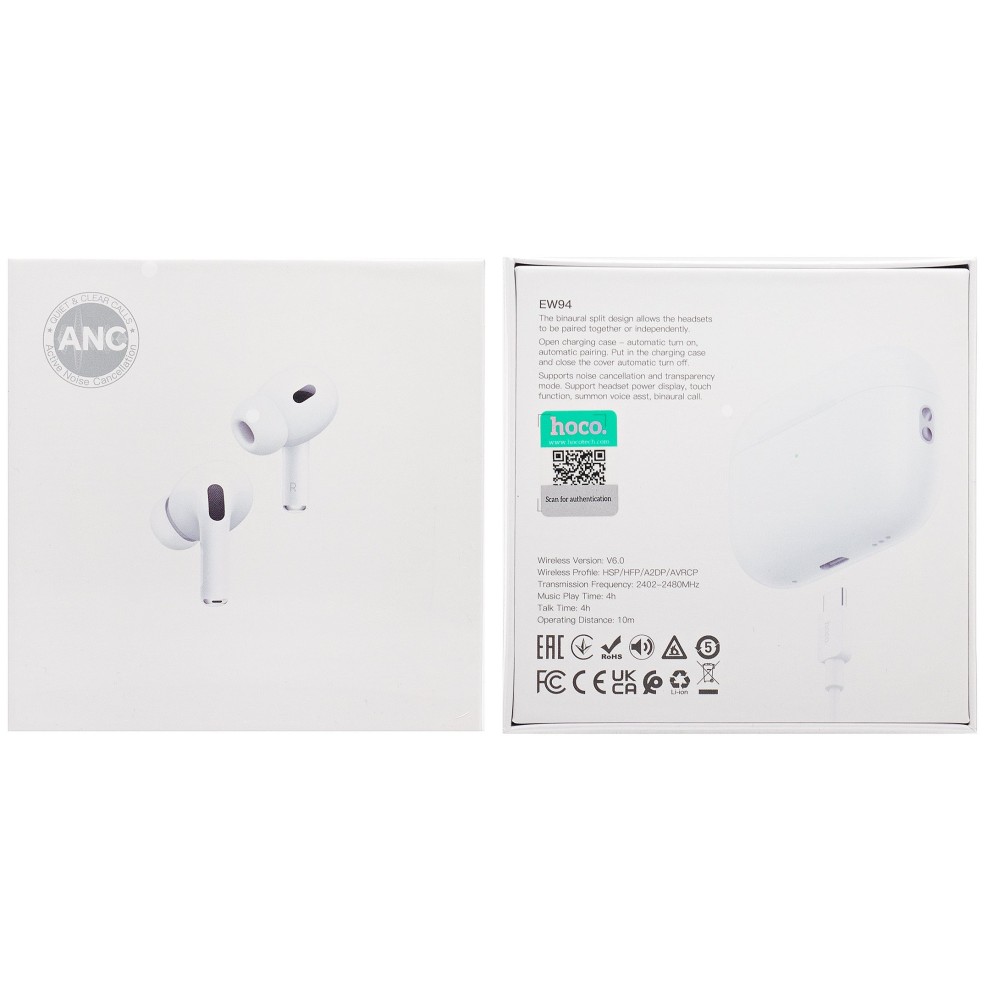 Технические характеристики Беспроводные TWS наушники HOCO EW94 (4 ч/300 mAh) белые