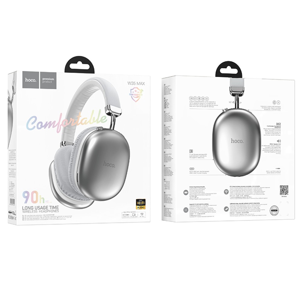 Полноразмерные беспроводные наушники HOCO W35 Max (90 ч/400 mAh/Bluetooth/AUX/TF) серебро