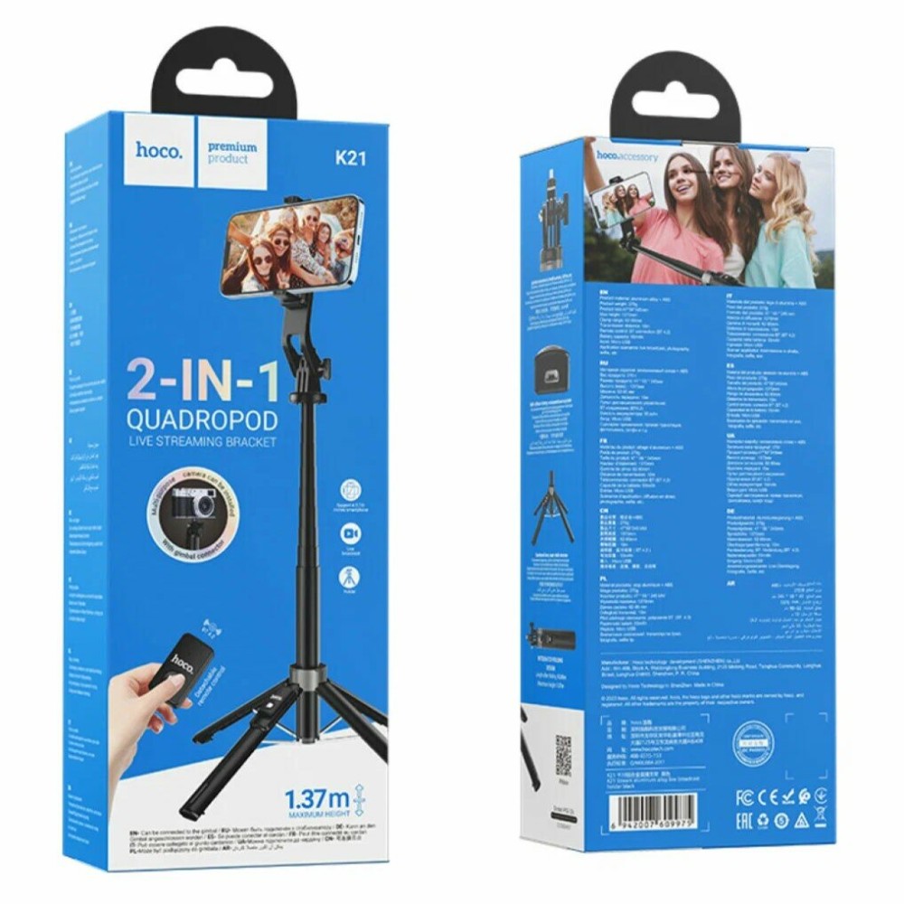 Селфи штатив HOCO K21 (Bluetooth/1.37м) черный