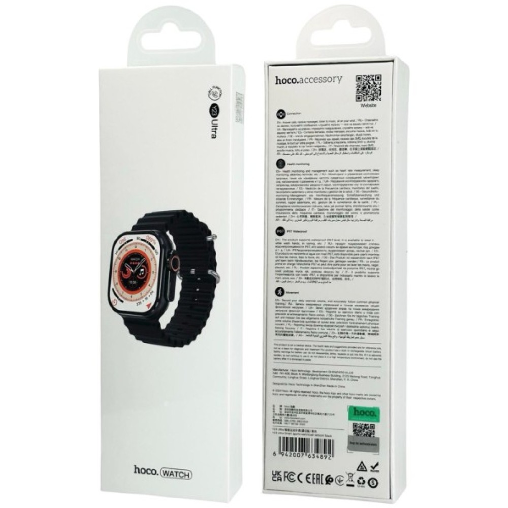 Технические характеристики Умные часы HOCO Y23 Ultra AMOLED (2"/IP67/функция звонка/смс/300mAh) черные