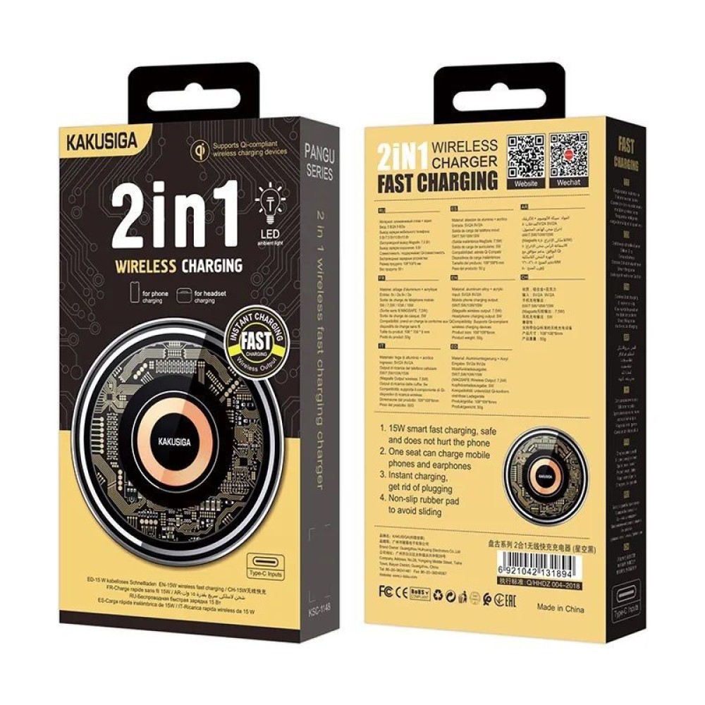 Беспроводное зарядное устройство KAKUSIGA KSC-1148 2 в1 (15W) черное