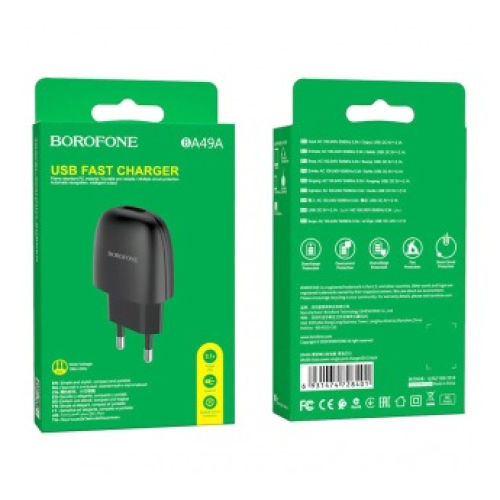 Сетевое ЗУ BOROFONE BA49A (USB/2.1A) черное
