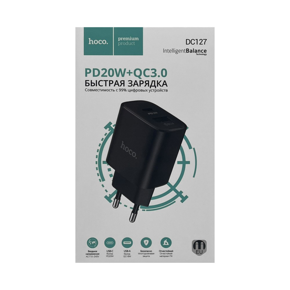Сетевое ЗУ HOCO DC127 (USB QC3.0/PD 20W) черное
