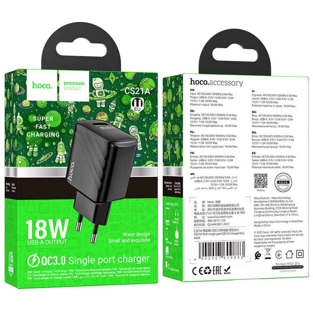 Технические характеристики Сетевое ЗУ HOCO CS21A (USB QC3.0/18W) черное