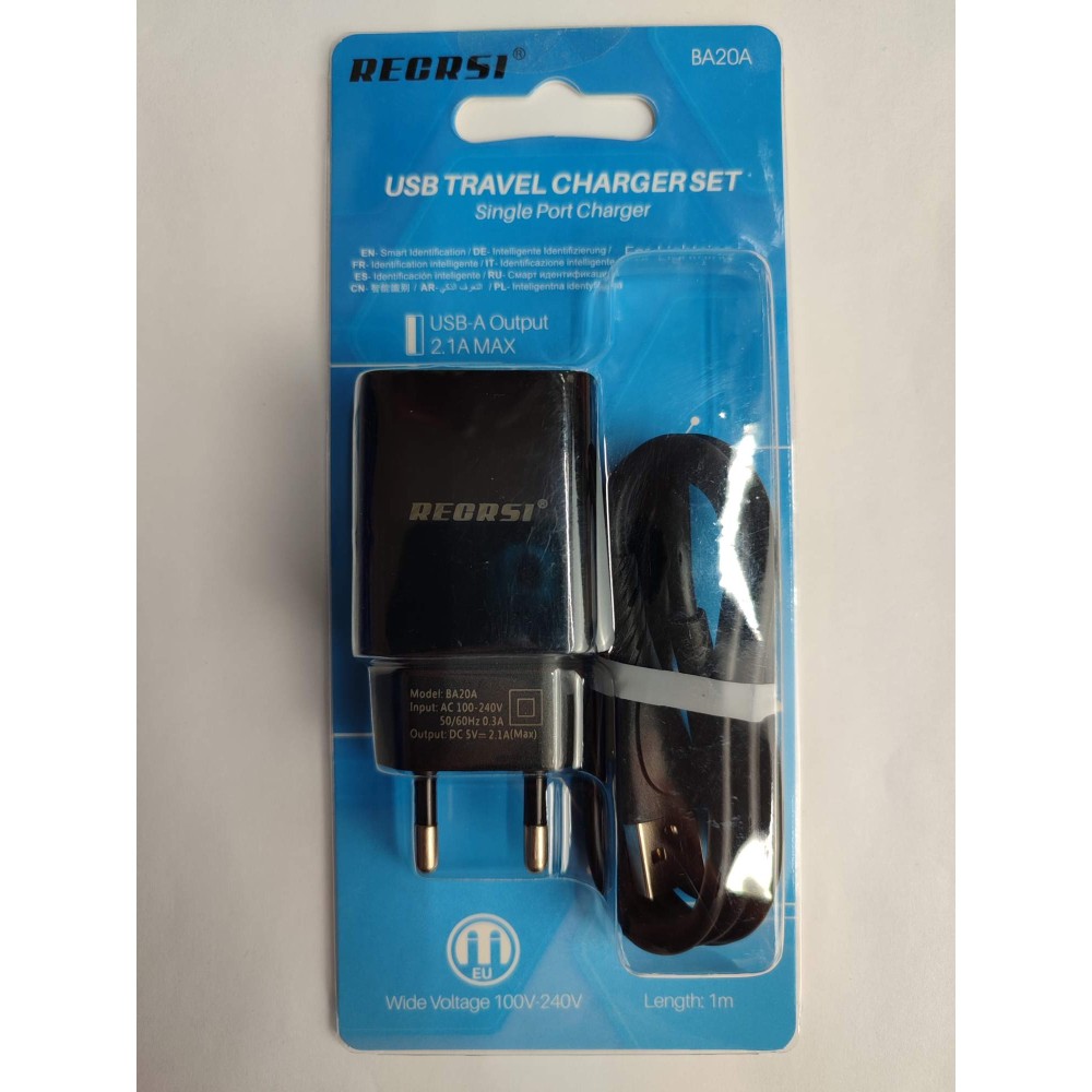 Сетевое ЗУ RECRSI BA20A + кабель Lightning (USB/2.1A) черное