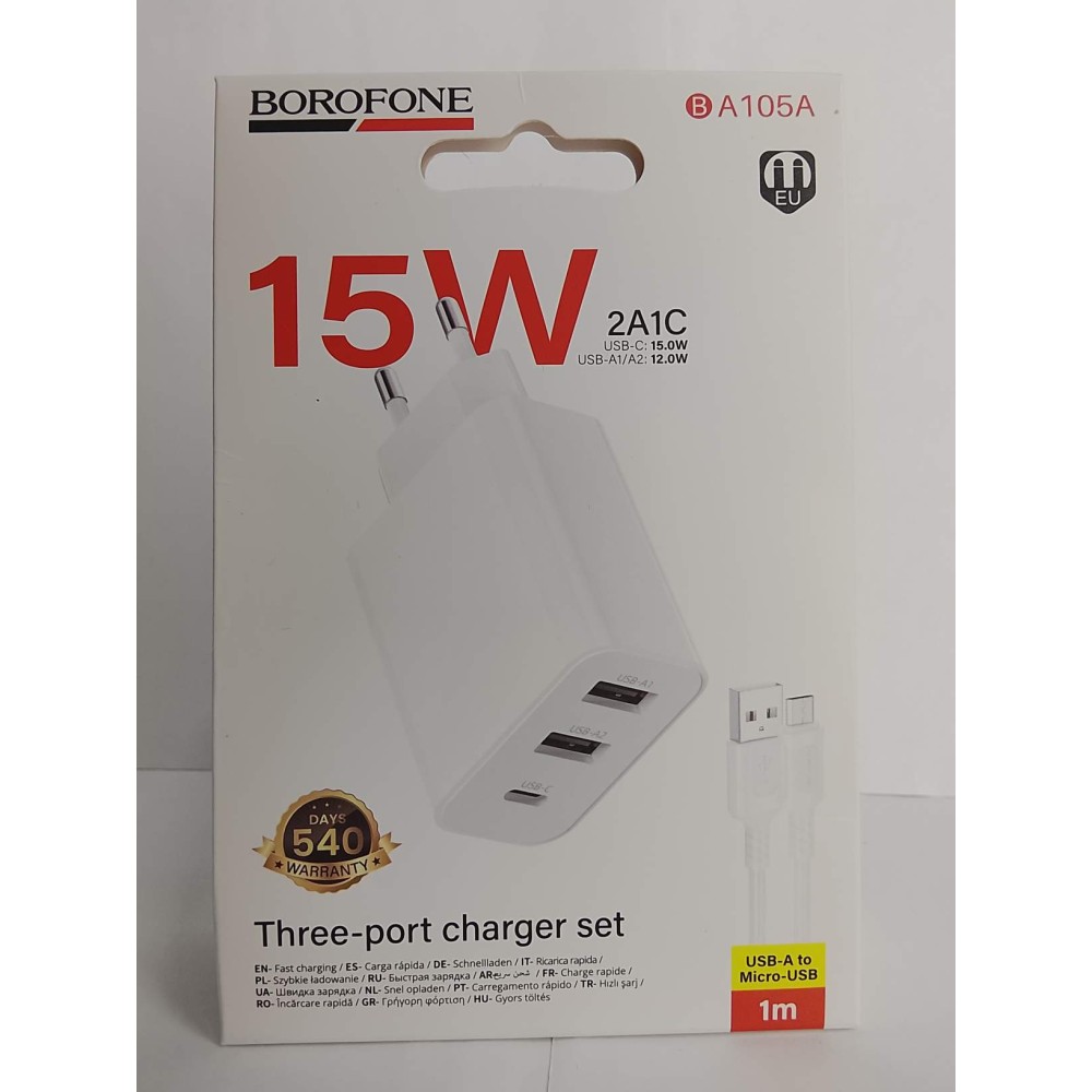 Сетевое ЗУ BOROFONE BA105A + кабель Micro USB (2USB 2.4A/PD 15W) белое