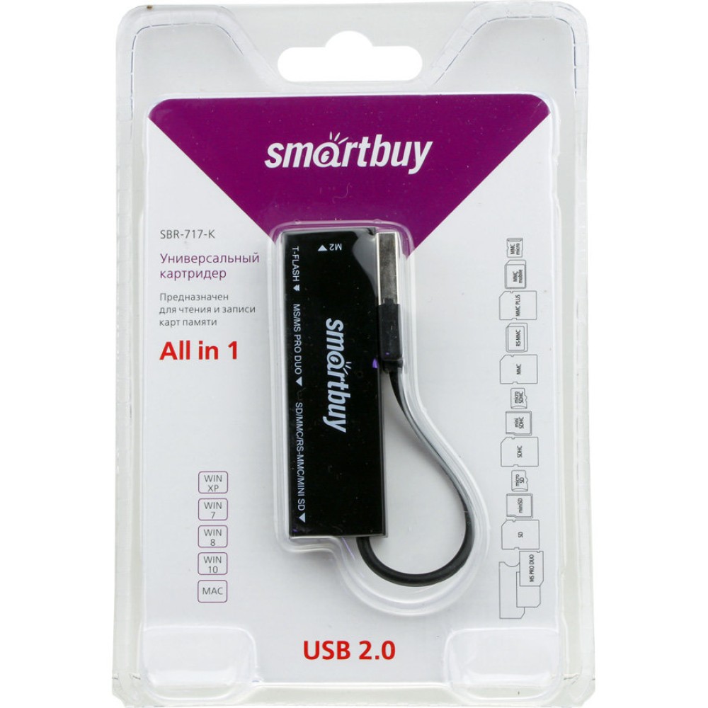 Технические характеристики Картридер SMARTBUY 717 (TF/SD/MMS/M2/MS) черный