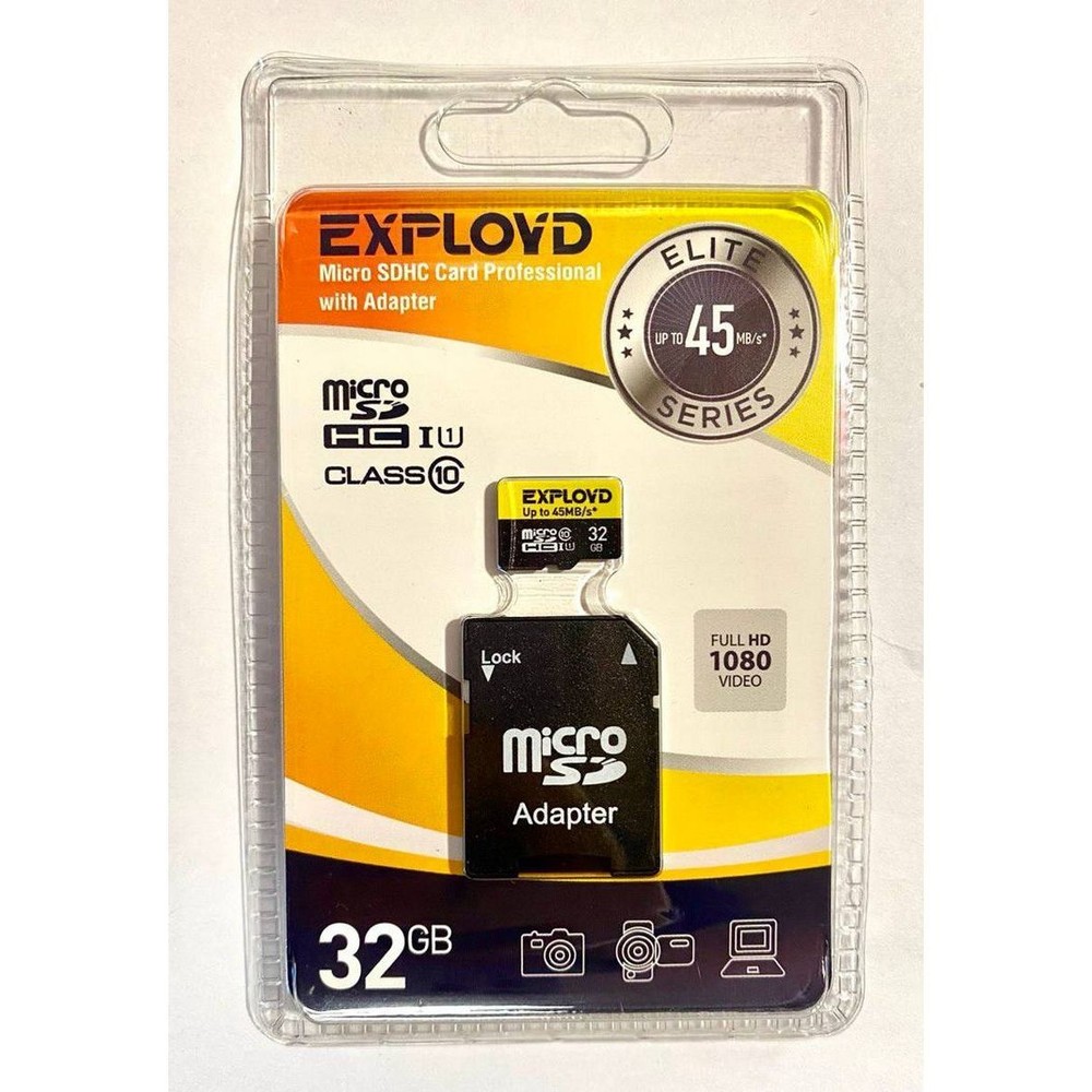 32Гб карта памяти Exployd microSD + SD адаптер class10 UHS-1
