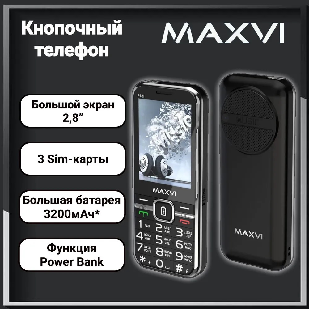 Стильный и мощный мобильный телефон MAXVI P18i Black с длительным временем работы
