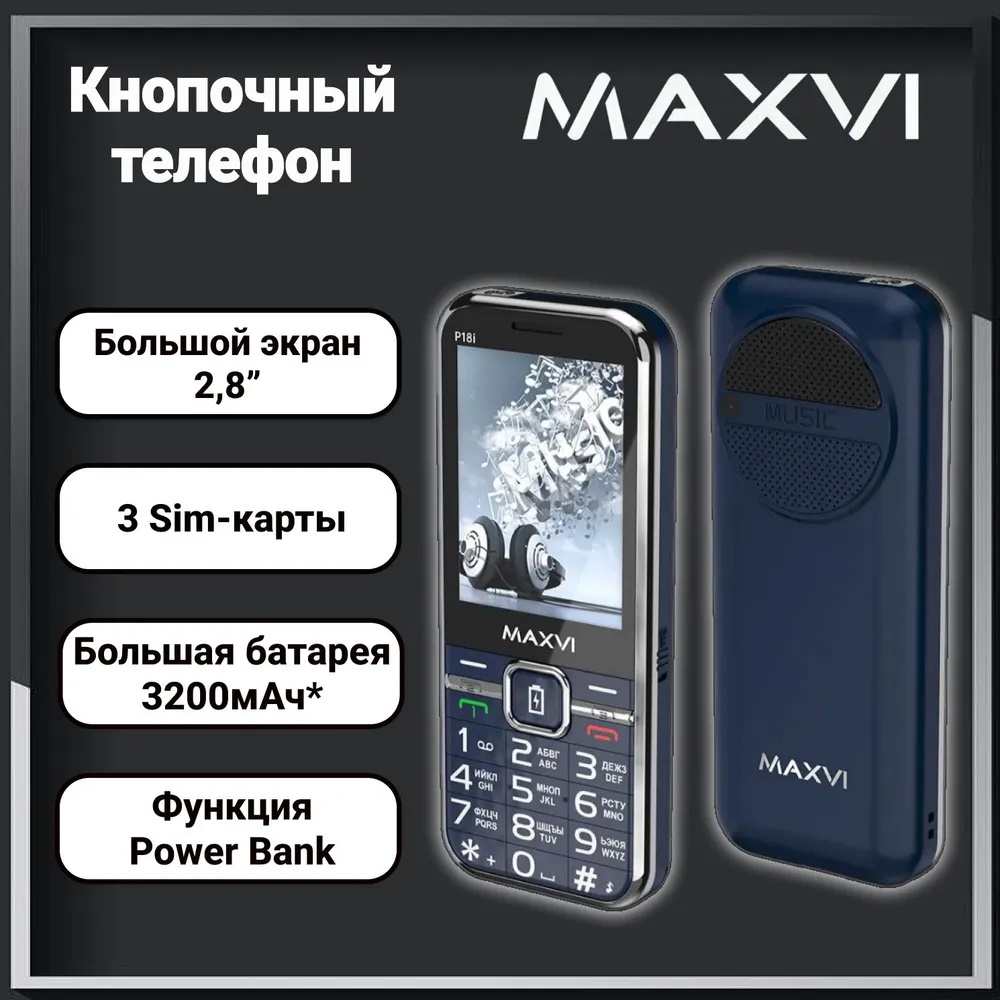 Стильный и мощный мобильный телефон MAXVI P18i Blue с длительным временем работы